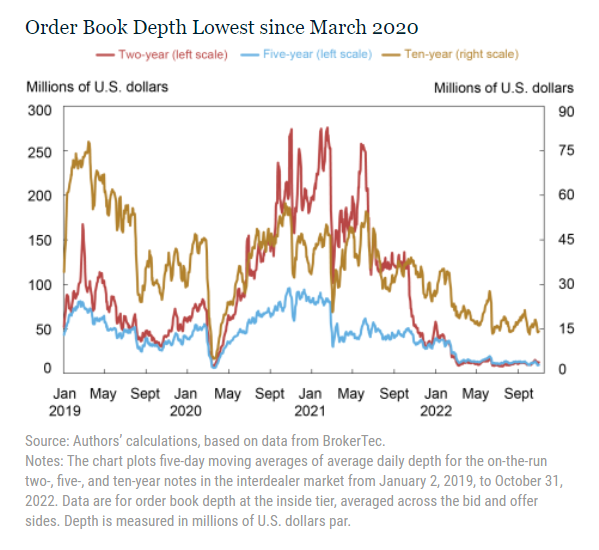La liquidità è cruciale per i molteplici utilizzi dei titoli del Tesoro nei mercati finanziari. I titoli del Tesoro sono utilizzati per finanziare il governo degli Stati Uniti, per gestire il rischio dei tassi di interesse, come benchmark privo di rischio per la determinazione del prezzo di altri strumenti finanziari e dalla Federal Reserve nell’attuazione della politica monetaria. Avere un mercato liquido è importante per tutti questi scopi e quindi di grande interesse sia per i partecipanti al mercato che per i responsabili politici.