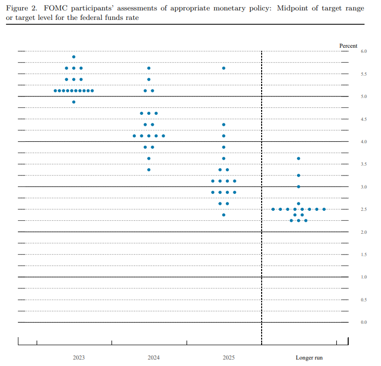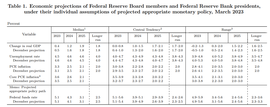 I responsabili politici hanno previsto che i tassi chiuderanno il 2023 a circa il 5,1%, invariati rispetto alla stima mediana di dicembre. La proiezione mediana per il 2024 è salita al 4,3% dal 4,1%. I funzionari sono pronti ad aumentare i tassi più in alto, se necessario, e non si aspettano tagli dei tassi quest’anno.
