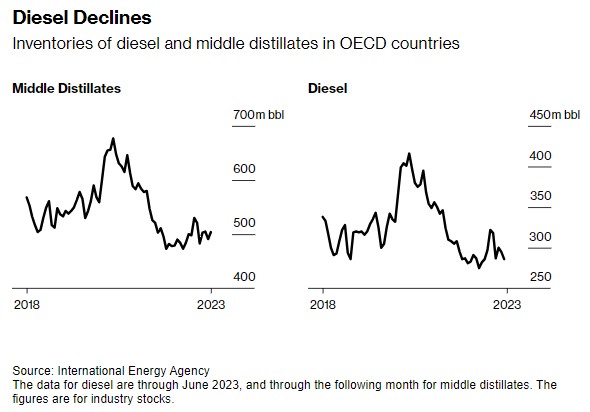 Nell’Europa nordoccidentale, il premio dei futures diesel di riferimento rispetto al petrolio greggio, noto come crack ICE Gasoil, ha superato i 37 dollari al barile. Anche i futures con consegna a ottobre hanno guadagnato rispetto al carburante con arrivo nel mese successivo. La struttura rialzista, nota come backwardation, si è avvicinata ai 36 dollari per tonnellata, il massimo di tre giorni.