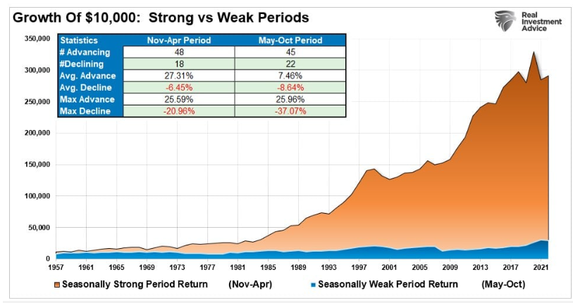 I dati storici hanno generalmente sostenuto l’adagio “Sell in May and go away” nel corso degli anni, con i ritorni da novembre ad aprile che hanno ampiamente superato quelli da maggio a ottobre.
