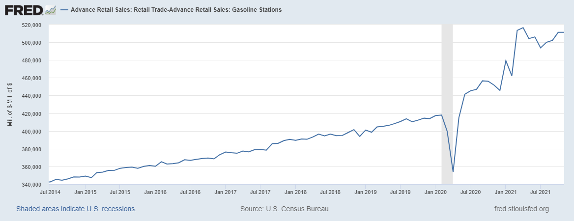 Dopo la breve flessione della spesa dei consumatori nel 2020 abbiamo assistito ad un recupero record. Abbiamo potuto osservare un comportamento anomalo da parte dei consumatori. Sottraendo la benzina, le vendite al dettaglio si sono riprese in poco tempo e si trovano sopra i livelli pre-pandemici.
