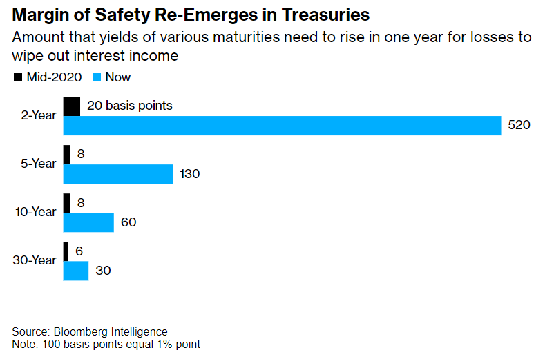 Una delle conseguenze più rilevanti di questi cambiamenti è che, per la prima volta in quasi due decenni, i rendimenti obbligazionari offrono una copertura più efficace contro il rischio di un ulteriore aumento dei rendimenti. I rendimenti dei titoli a 5 anni, ad esempio, dovrebbero aumentare di 130 punti base nel corso dell’anno successivo prima che l’investimento inizi a registrare perdite teoriche. Questo margine di sicurezza, che in passato era quasi scomparso, offre agli investitori una notevole tranquillità, permettendo loro di pianificare investimenti a lungo termine con una maggiore fiducia.