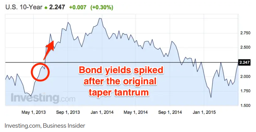 L’annuncio del tapering ha rappresentato un enorme shock per le aspettative degli investitori obbligazionari che hanno risposto immediatamente alla prospettiva di un futuro calo dei prezzi vendendo obbligazioni.