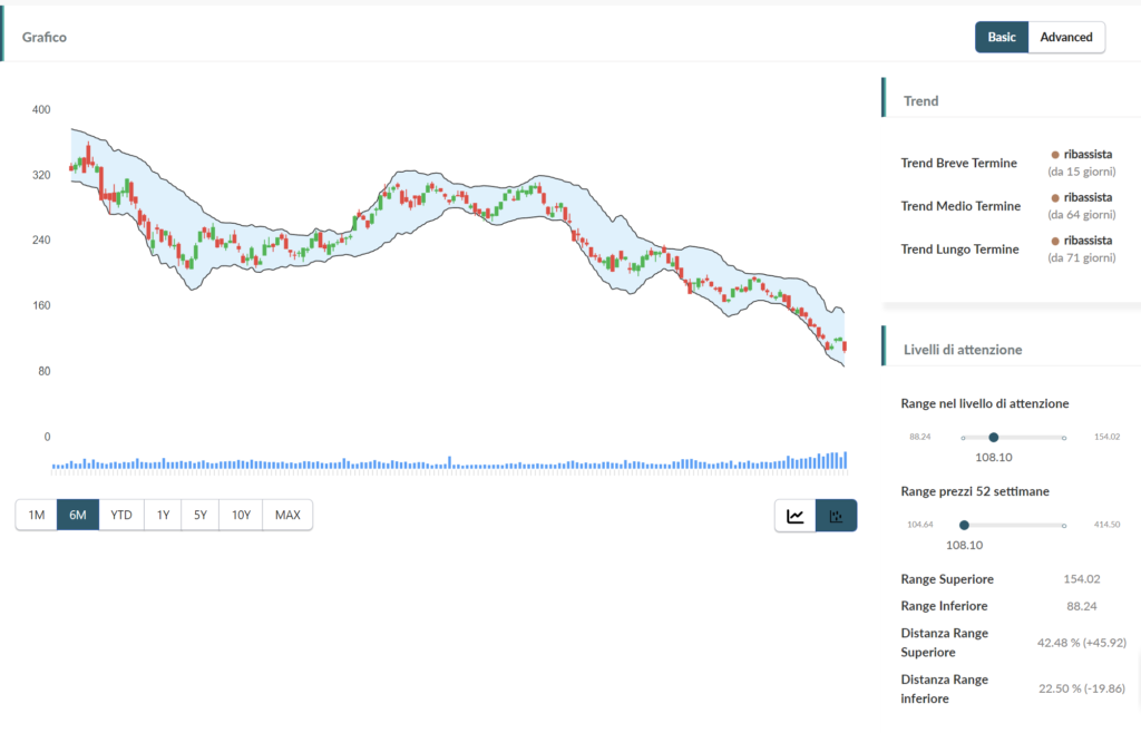 Dal punto di vista tecnico Tesla è in forte trend ribassista, come mostrato dal grafico di Quantaste: