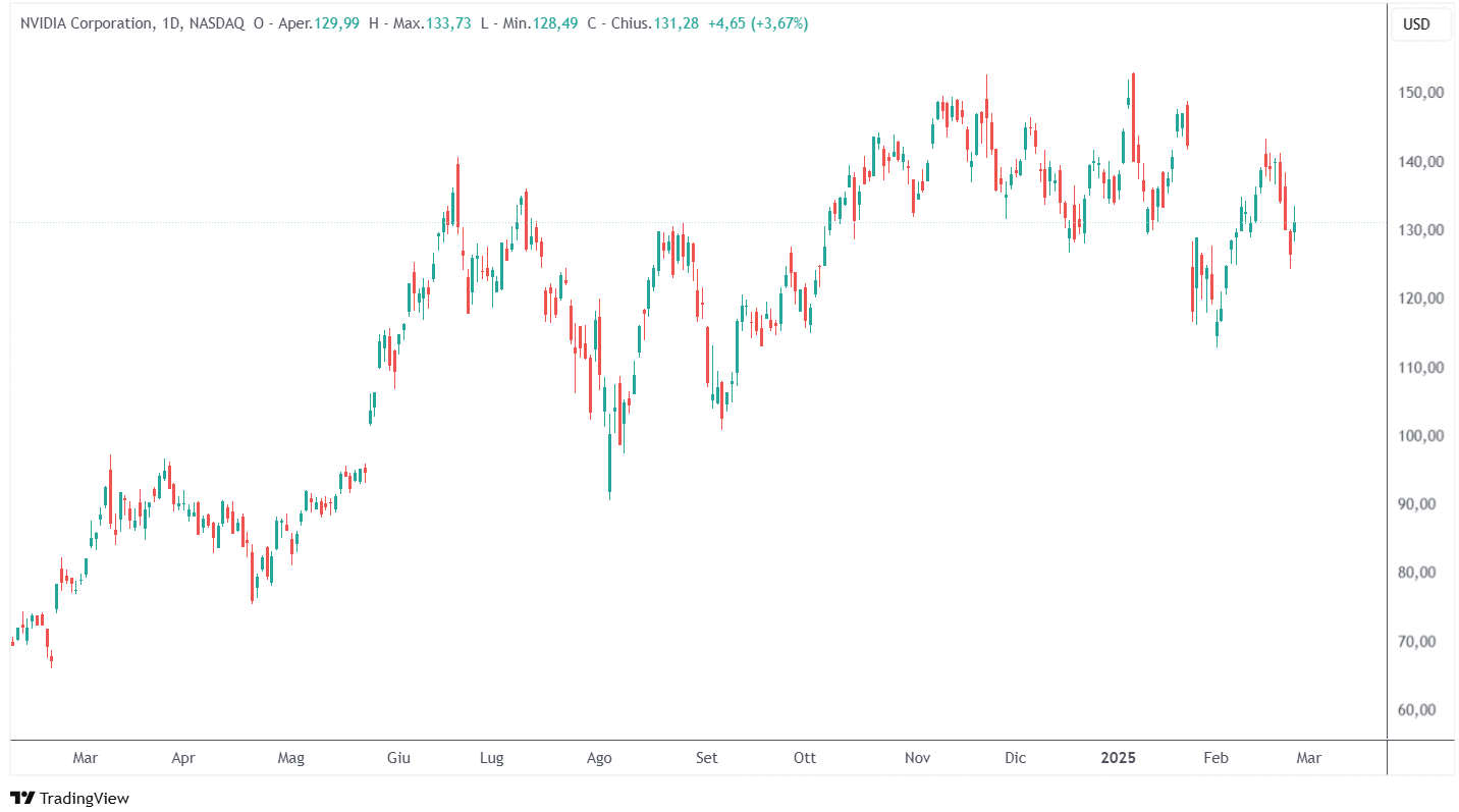 Dopo il rilascio delle trimestrali di Nvidia, il sentiment degli investitori è stato piuttosto contrastante. Nonostante un incremento del 3,7% durante la sessione regolare, il prezzo delle azioni ha subito lievi ribassi nel dopochiusura. Le azioni Nvidia sono scese di meno dell’1% nelle contrattazioni post-chiusura, evidenziando un certo scetticismo, soprattutto dopo aver visto performance eccezionali nei periodi precedenti. Nvidia ha registrato un calo di circa il 2,2% nel corso dell’anno, ma va detto che, su base annuale, le azioni sono comunque salite del 66%.