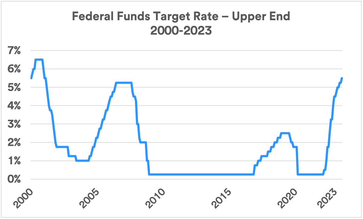 L’aumento dei tassi di luglio ha portato l’intervallo obiettivo per il tasso di riferimento della Fed dal 5,25% al ​​5,5%, il livello più alto in 22 anni. Ciò ha segnato una ripresa dell’inasprimento dopo che i funzionari hanno lasciato i tassi invariati alla riunione precedente per la prima volta da quando hanno iniziato ad inasprire all’inizio del 2022.