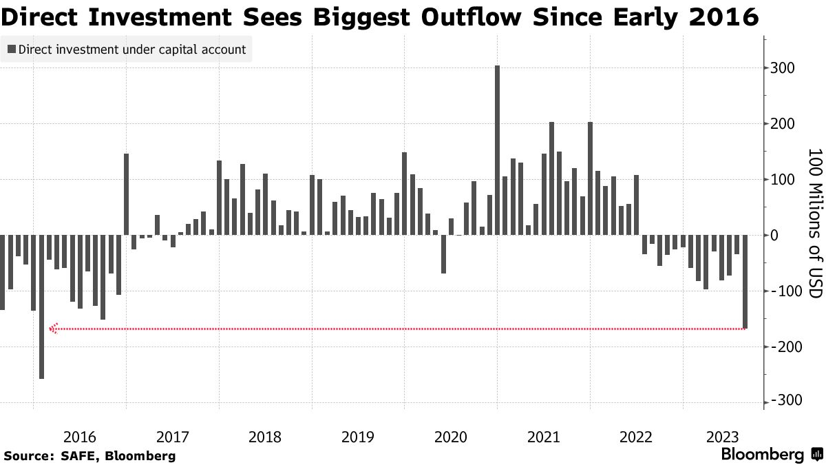 Gli investimenti diretti sono scesi a un deficit di 16,8 miliardi di dollari ad agosto, il peggiore dall’inizio del 2016. Il saldo è negativo dalla metà del 2022 poiché le restrizioni Covid e la repressione del settore privato hanno tenuto lontani gli investitori.